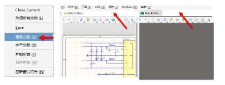 When modular layout, you can use the “vertical split” command to split the schematic editing interface and the PCB design interaction interface, as shown in Figure 7, which makes it easier for us to view the view and quickly layout.