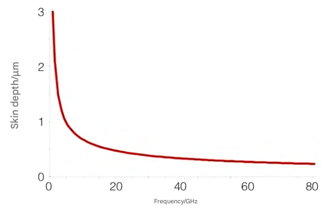 Figure 1 Relationship between skin depth and frequency 1.2 Test of conductor copper foil roughness