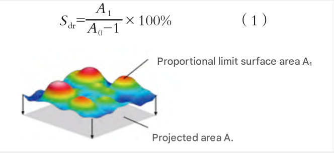 Sdr is the interface expansion area ratio. The expansion area (surface area) of the defined area indicates how much the area has increased relative to the defined area. As shown in Figure 4, the calculation formula is: