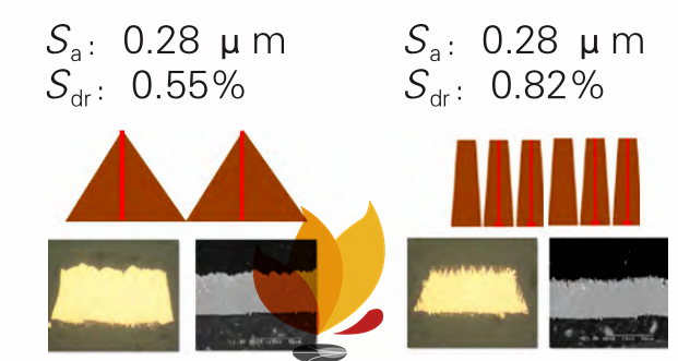 The definitions of Ra, Rz, Rq and Sa, Sz, Sq are the same as those of conventional roughness. Here, Sdr roughness should be emphasized.
