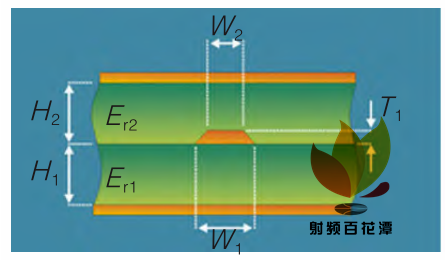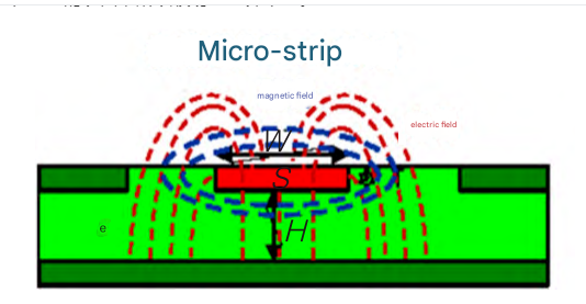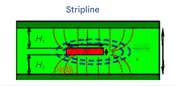 2.1.1 Microstrip and stripline design As shown in Figure 6, microstrip is a transmission line distributed on the outer layer of the circuit board, separated from a single ground plane by dielectric material. The design features of microstrip are: