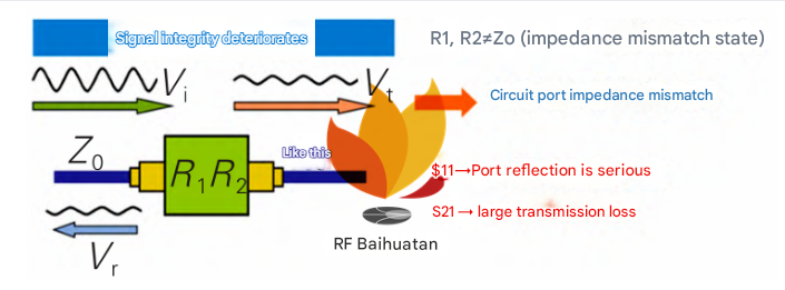In order to meet signal integrity, before testing the electrical performance insertion loss, the product impedance must be tested to match 50 Ω or 100 Ω. This is related to the design of the electrical performance Loss test instrument. The electrical performance Loss test instrument is generally purchased with a single-ended 50 Ω and a differential 100 Ω design. When the product impedance matches the instrument port impedance, there is almost no reflection at the test port, and the test insertion loss is accurate (as shown in Figure 13); if the product impedance does not match the instrument port impedance and is mismatched, it will This causes serious reflection at the test port when testing insertion loss, resulting in large errors in the test insertion loss and inaccurate test results (as shown in Figure 14).
