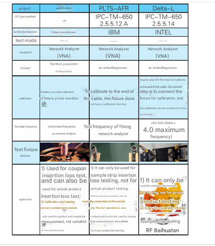 Common insertion loss test methods include the probe station method, PLTS-AFR method, and Delta-L method. Table 1 is an introduction to these three test methods.