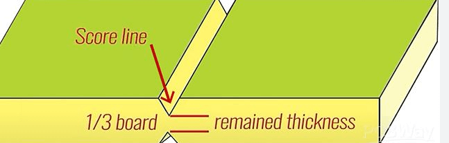 In addition to depth and angle, the spacing between V-scores is an important consideration.