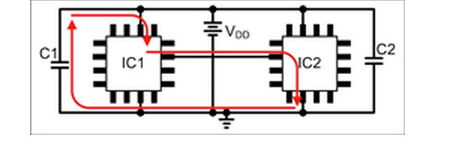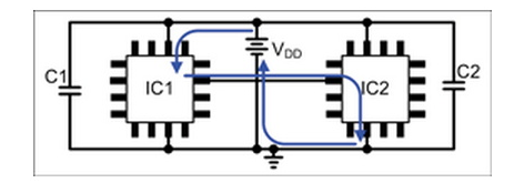 Figure 1 shows the simplest connection in a design: a direct connection from one chip to another. As an ideal circuit in an ideal world, IC1 has zero output impedance and IC2 has infinite input impedance. Therefore, no current will flow. In the real world, however, current will flow from IC1 to IC2, or vice versa. What happens to this current? Does it just fill up IC2 or IC1? That’s a funny rhetorical question.