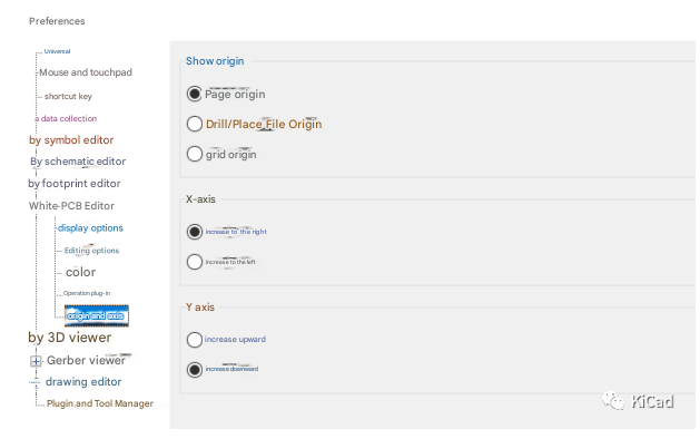KiCad can use three types of origins in the PCB editor: page origin, drilling/placement file origin, and grid origin. You can also customize the direction of the coordinate axis. ”