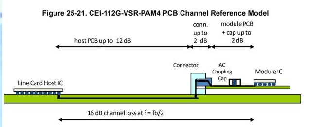 The maximum loss on the host motherboard is 12dB, the maximum loss of the connector is 2dB, and the maximum loss of the optical module and capacitor is 2dB. The total system loss is 16dB. Generally speaking, as long as the PCB board level can meet this loss requirement, it has met the protocol indicators. The rest is the chip (it is possible that some chips have poor performance).
