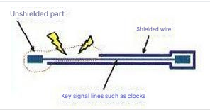 As shown in the figure above: In high-speed PCB design, key high-speed signal lines such as clocks need to be shielded. If they are not shielded or only partially shielded, EMI leakage will occur. It is recommended to punch holes for grounding every 1000mil for shielded lines. 2. Closed-loop routing rules for high-speed signals As the density of PCB boards increases, many PCB layout engineers are prone to this kind of mistakes during routing, as shown in the following figure: