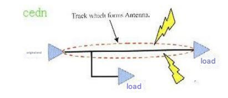 High-speed signal networks such as clock signals produce closed-loop results when routing on multi-layer PCBs. Such closed-loop results will produce loop antennas and increase the radiation intensity of EMI. 3. Open-loop routing rules for high-speed signals Rule 2 mentions that closed-loop high-speed signals will cause EMI radiation, and the same open-loop will also cause EMI radiation, as shown in the following figure: