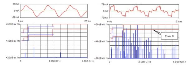 This results in substantially higher emissions, far exceeding the FCC/CISPR Class B limits for unterminated transmission lines.