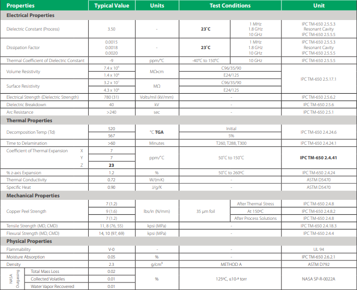 • Very Low Loss Tangent provides higher