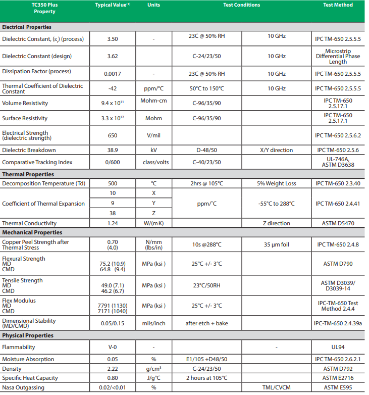 TC350™ Plus laminates are ceramic filled PTFE-based woven glass reinforced