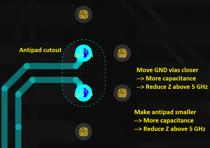 • Antipad size: Optimize clearance to balance capacitance and manufacturability