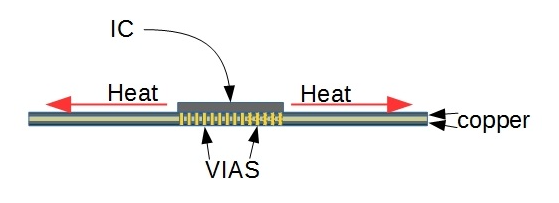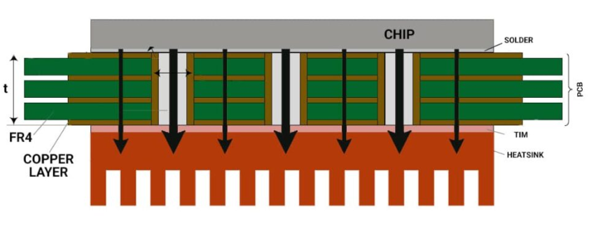 - Conduction: Heat transfer through solid materials (PCB substrate, copper traces, thermal vias)
