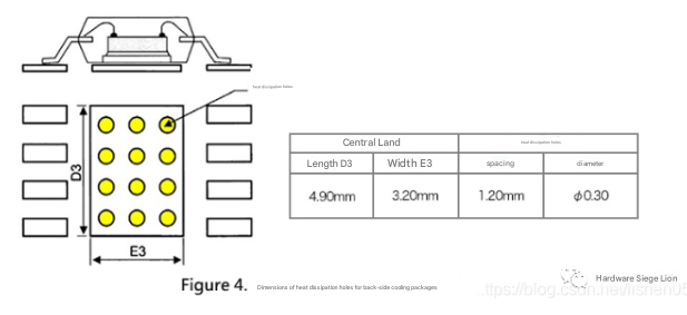 To improve the thermal conductivity of the heat dissipation holes, it is recommended to use small-diameter through holes with an inner diameter of about 0.3mm that can be filled with electroplating. It should be noted that if the hole diameter is too large, solder creeping may occur during the reflow process. The heat dissipation holes are spaced about 1.2mm apart and are configured directly below the heat sink on the back of the package. If the heat dissipation directly below the heat sink on the back is not enough, heat dissipation holes can also be configured around the IC. The key point of the configuration in this case is to configure it as close to the IC as possible.