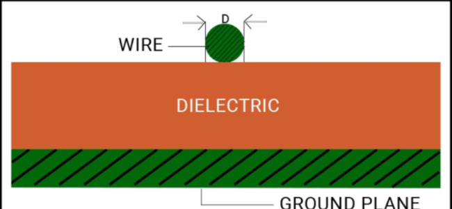 Microstrip: It consists of a discrete insulated wire separated by a fixed distance above the ground plane. The dielectric can be the insulating walls of the wire, or it can be a combination of this insulation and air.