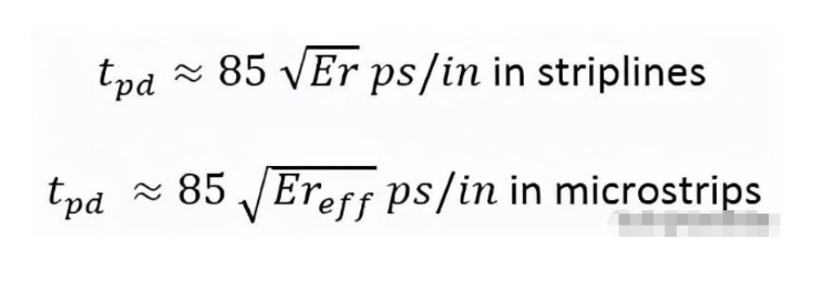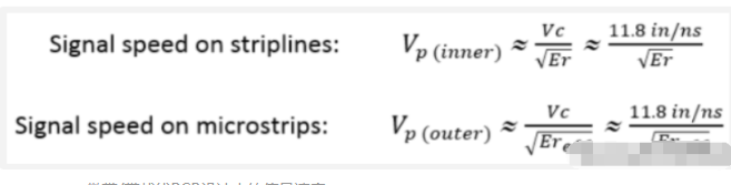 For microstrip/stripline PCB designs, the signal speed is calculated as follows: