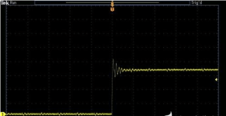An undamped digital signal(yellow channel 1) captured on a TI lightcrafter as it switches logic states from low to high.