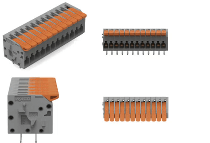 · Tool-free: No screwdriver is required to tighten the wire, making assembly faster and more efficient. Lever-Type Terminal Blocks are particularly useful for applications where wiring changes are frequent, such as field installations or lab prototyping.