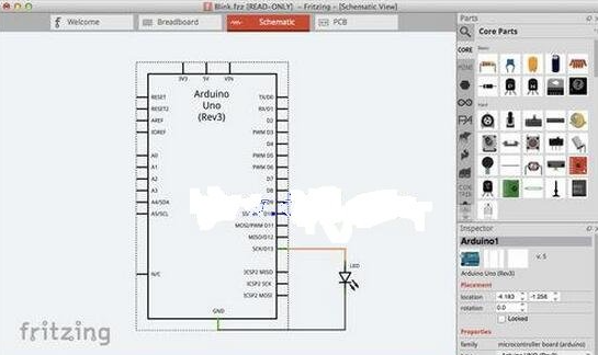 The Fritzing platform is more than just a simple PCB editor, but is designed to give makers and hackers the ability to actually create their own designs. It is designed so that users can implement their own Arduino microcontroller-based designs and create production-ready PCB layouts. Once the user has designed an actual circuit on the breadboard, it can then be transferred to the editor, which contains three different project views. The breadboard view allows users to drag and place virtual electronic components on a virtual breadboard. The schematic view is the formal expression of the schematic, which corresponds to the circuit on the virtual breadboard, but users can also edit it as needed. Finally, the PCB view allows users to place components on a virtual printed circuit board that can then be used for production.